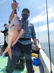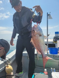 初めて御乗船頂いたお客も50cmクラスの真鯛を釣られ、2回目御乗船頂いたお客も見事58cmの真鯛を釣られました。2回目のお客様は前回のリベンジでしたが、無事にリベンジ成功されました?