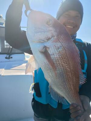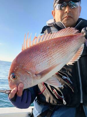 固定の一つテンヤ真鯛。最高に面白いですよ!